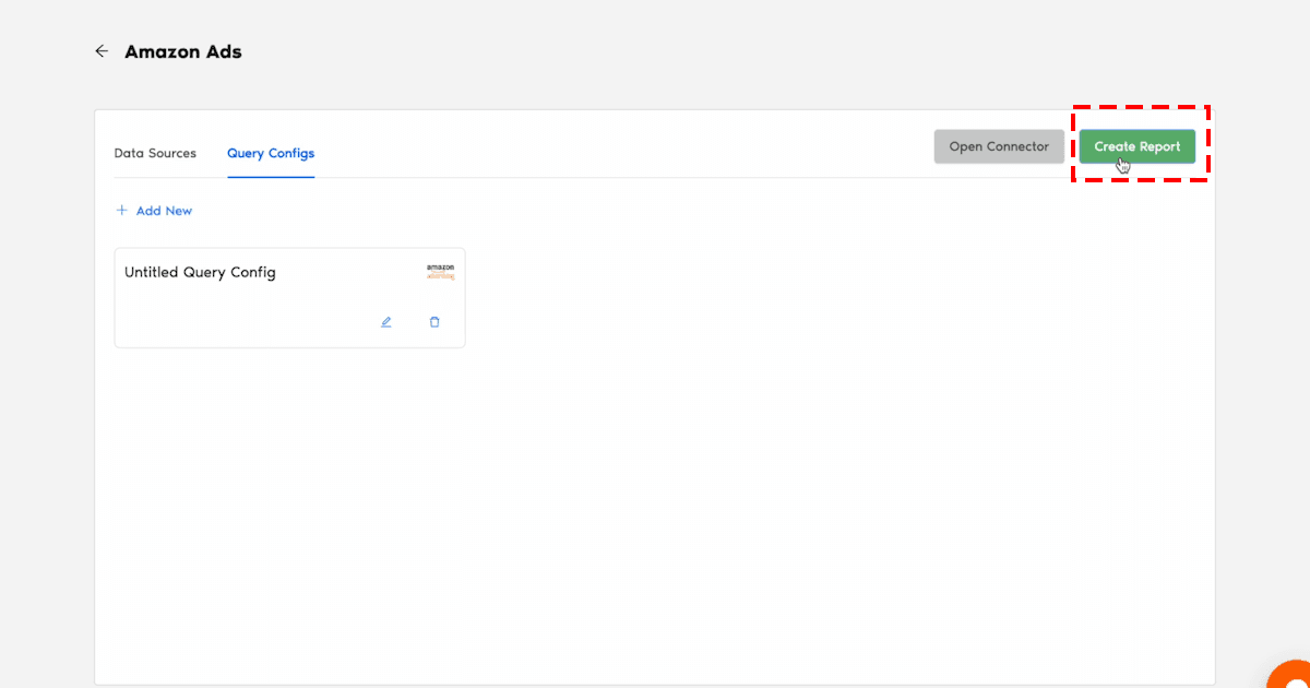 - Once inside the Amazon Ads Connector dashboard, click “Add New” from the Data Sources section.