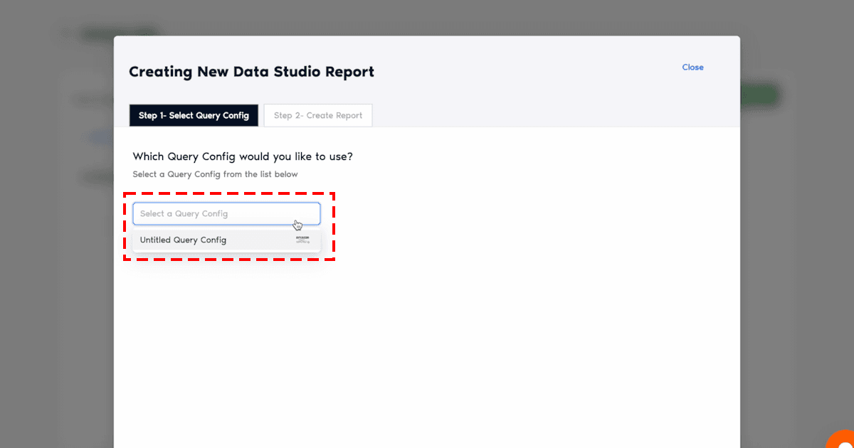 - From this window, choose the relevant Query Config (previously created) from the search bar and click on the Next button.