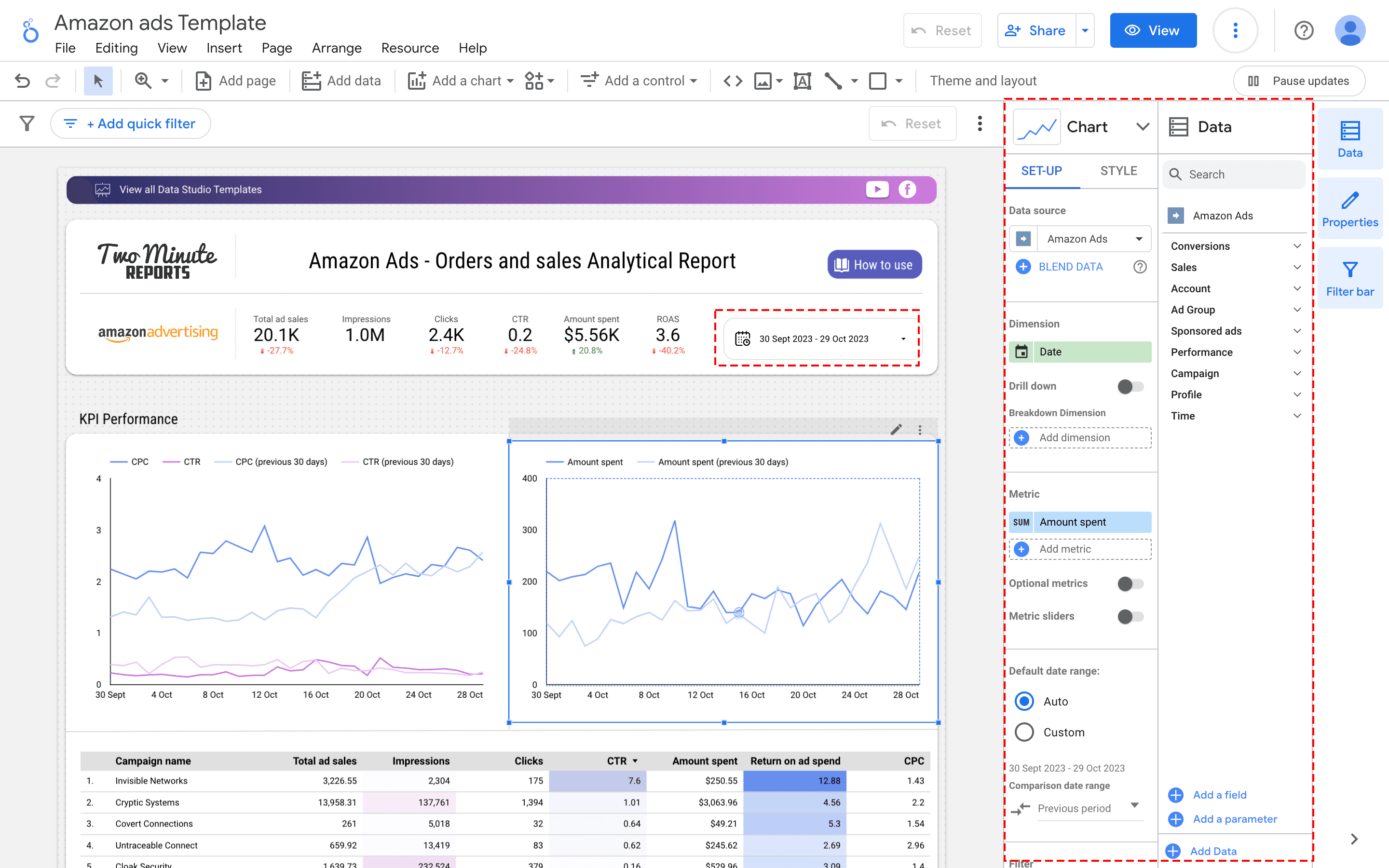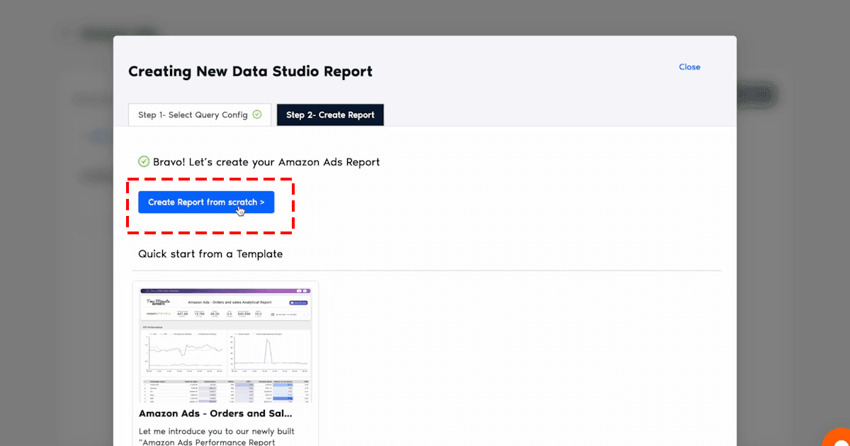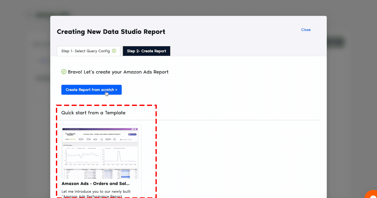 Method 2: Connect Amazon Ads to Looker Studio using in-built Templates of Two Minute Reports.