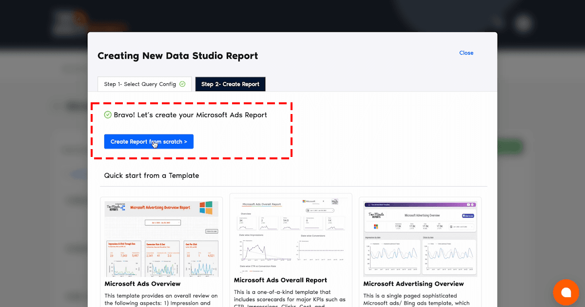 - From the next Create Report tab, click on “Create Report from scratch” to open Looker Studio.