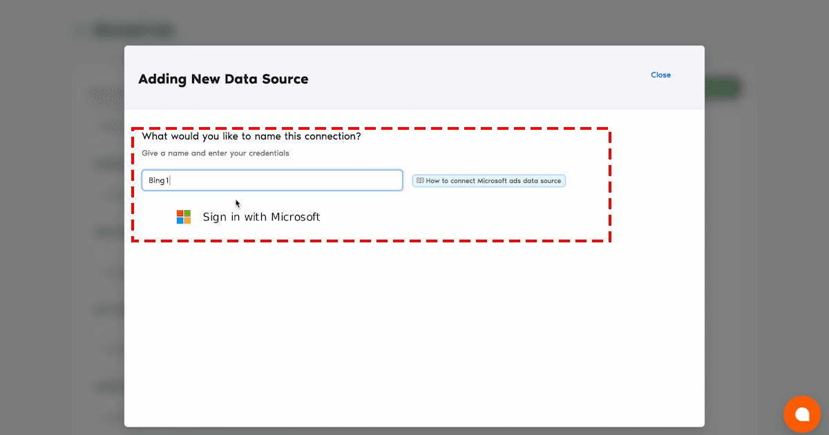 - Name your data source and sign into your Microsoft account. This step authorizes TMR’s connector to fetch data from Bing Ads.