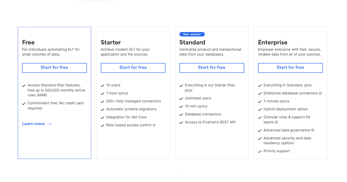 All plans include access to data warehousing and guided onboarding. However, you need to pay extra for the different types of add-ons available.