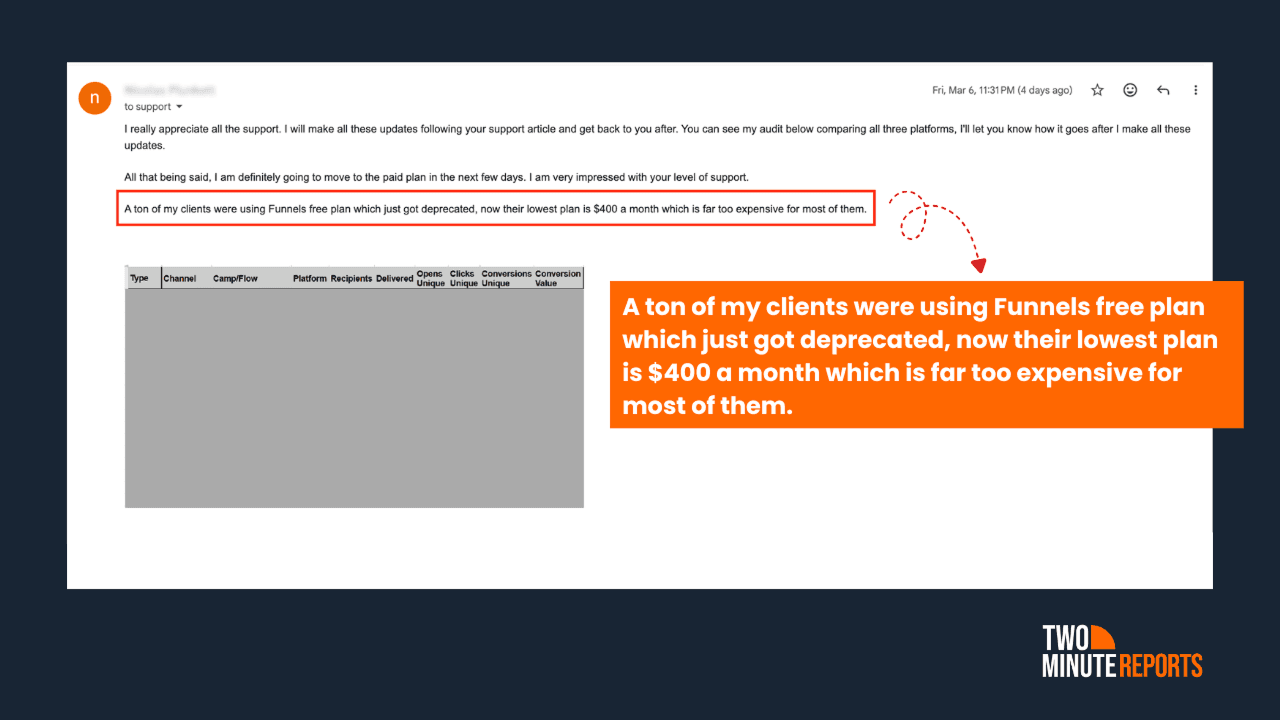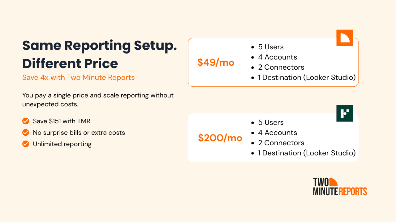 If Funnel's new pricing has you reconsidering, here's how Two Minute Reports compares on the things that matter most.