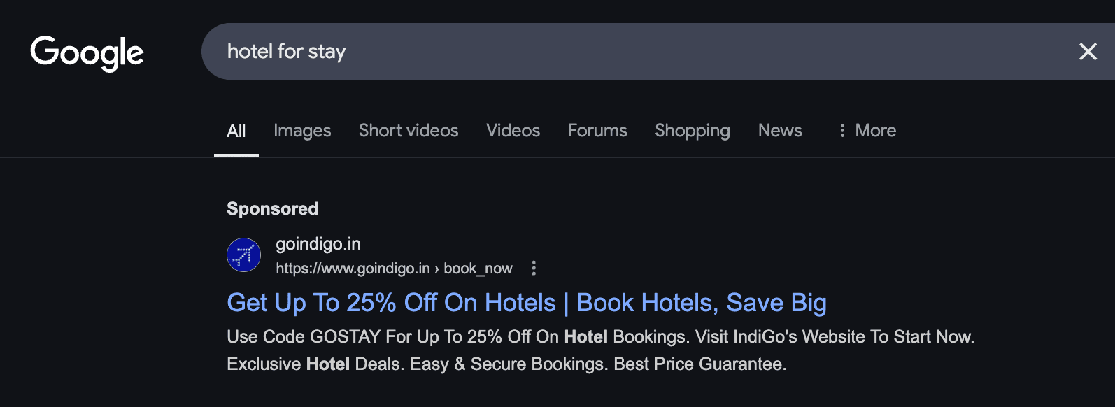- Example: A Google Search ad for a hotel might have a simple text, display, or video format with a call to action like “Get up to 25% off”.