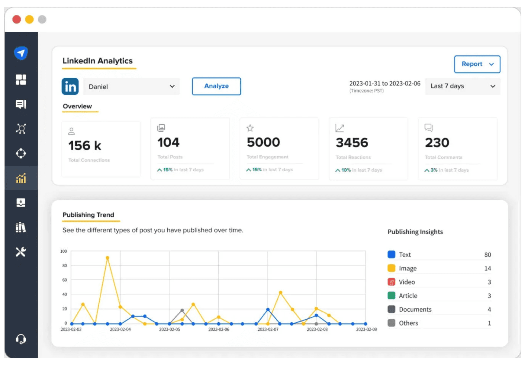 - Compare LinkedIn performance insights with other social media channels holistically.