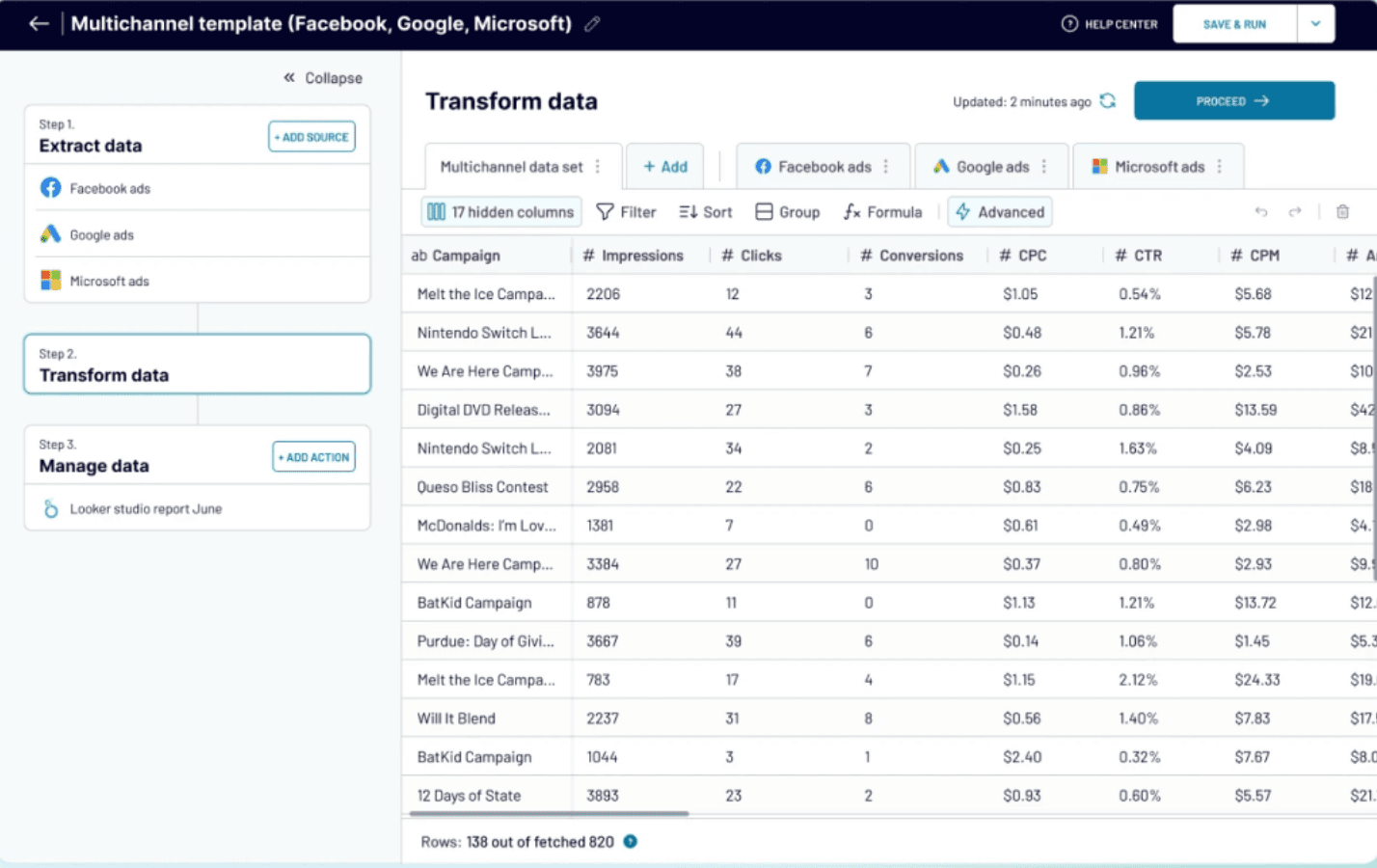 Two Minute Reports simplifies marketing analytics by automatically pulling data from over 30 sources into Google Sheets and Looker Studio. This automation saves you hours of manual reporting and allows you to focus on what matters most. With customizable templates and real-time insights, you can easily track KPIs and generate client-ready reports in just minutes.