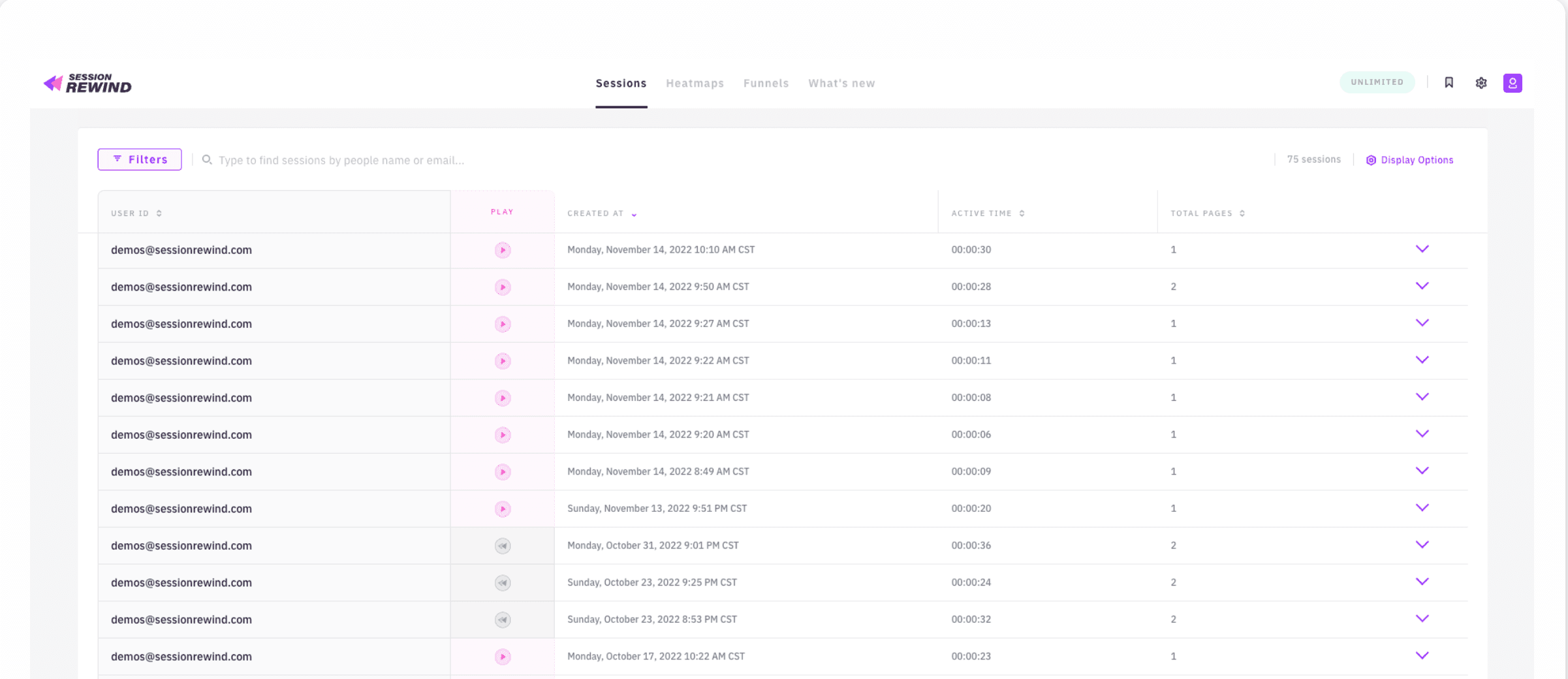 Session Rewind offers a free plan for 3000 sessions. The paid plans start at $14/month for 10,000 sessions.