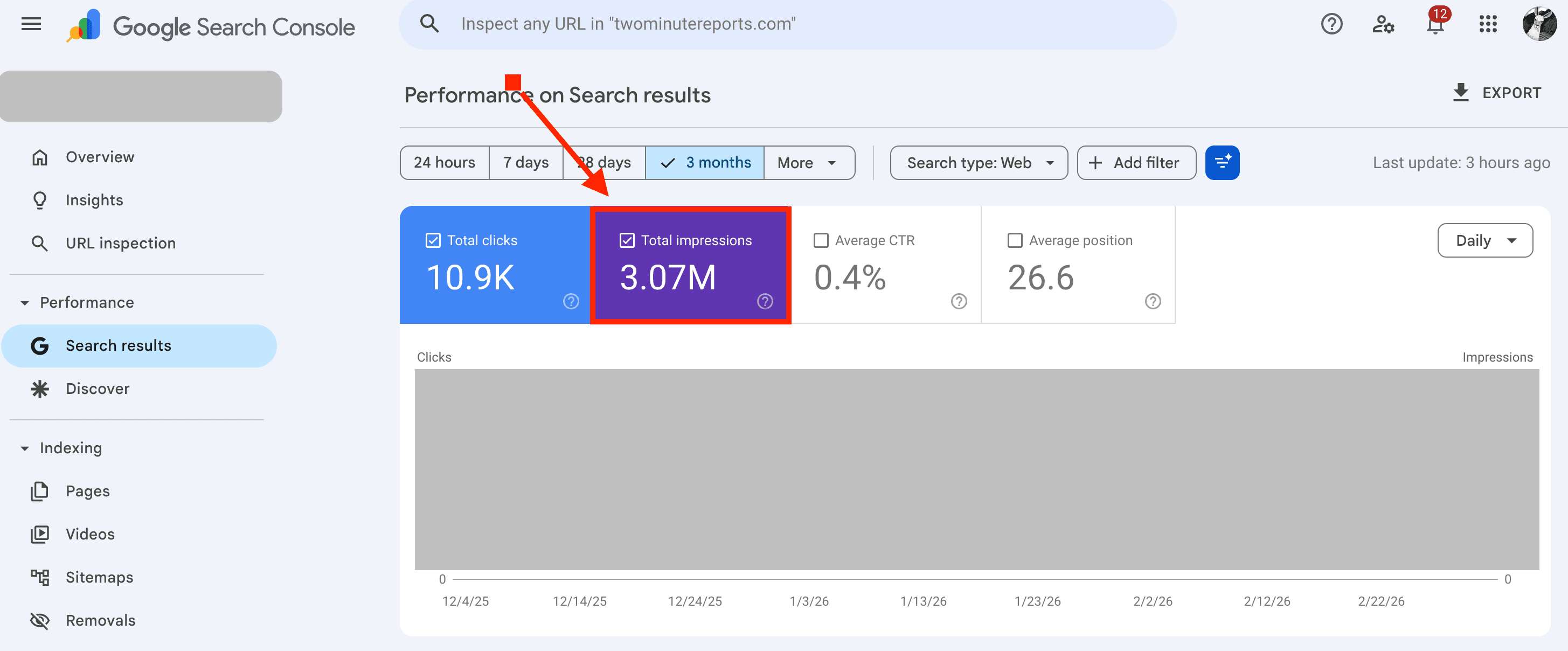 Think of impressions as your search footprint. Every time your page showed up in results, whether anyone clicked or not, that counts.