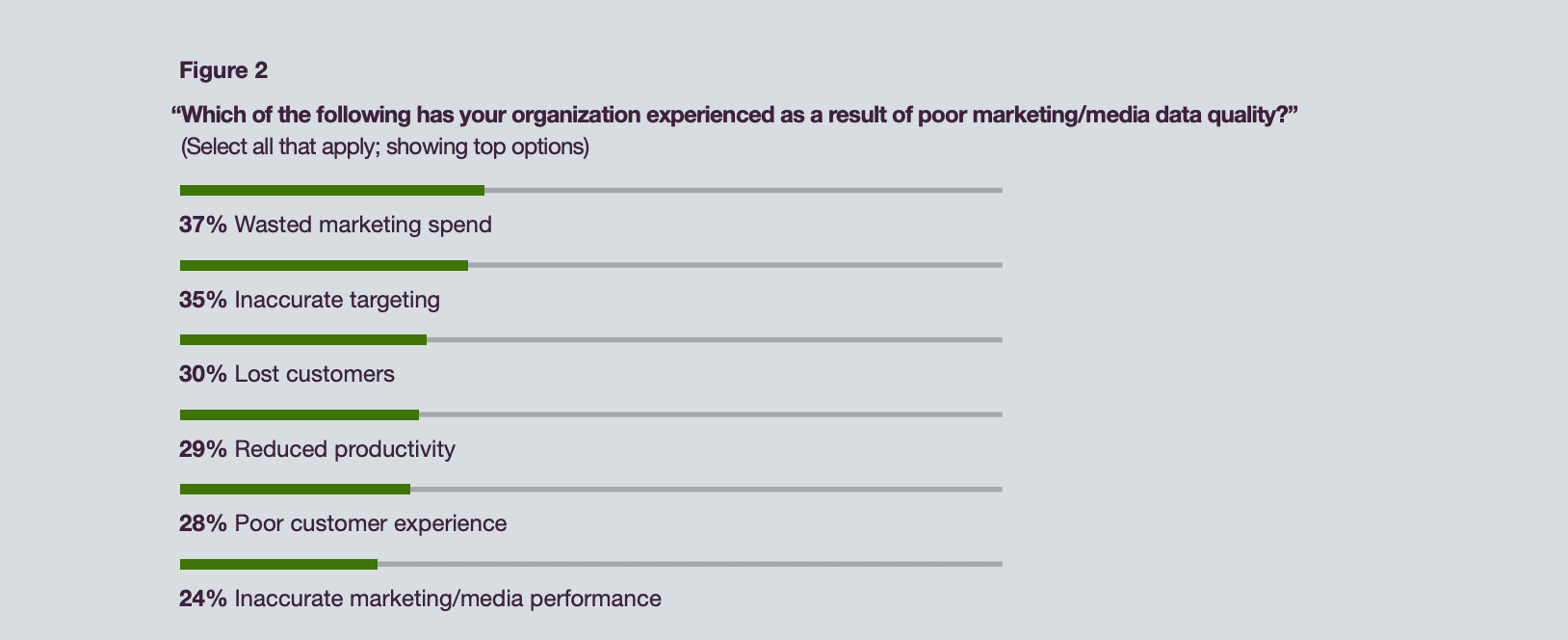 According to a study, 37% of businesses waste marketing spend due to poor data quality. The below statistics clearly explain the consequences of managing inefficient data.