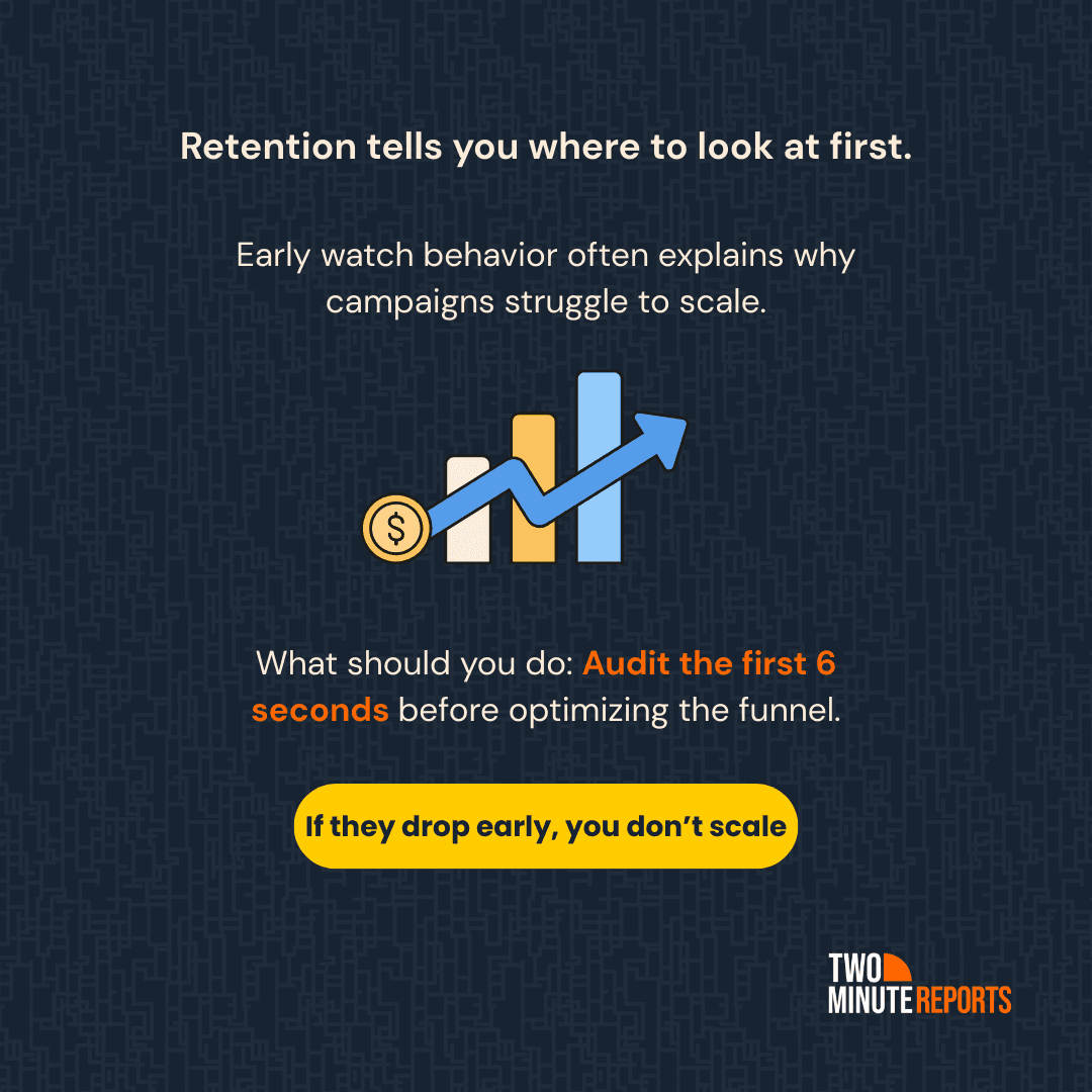 That said, early retention should always be read alongside targeting quality, bid strategy, and post-click experience. Drop-off alone doesn’t tell the full story. It tells you where to look first.