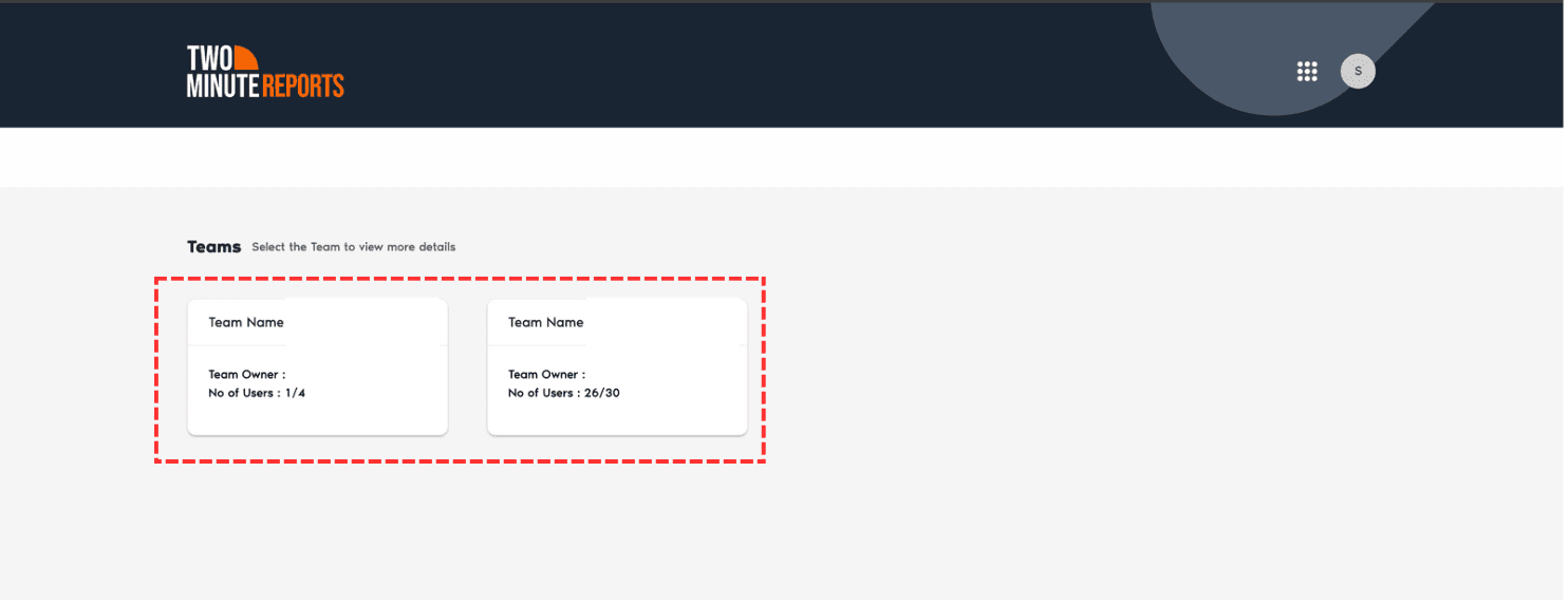 Note: Every organization has separate teams with assigned tasks. To enable collaboration, you can create separate “Teams” or groups within Two Minute Reports.