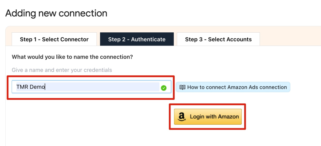 Step 2: Create a new Connection to streamline Amazon Ads accounts