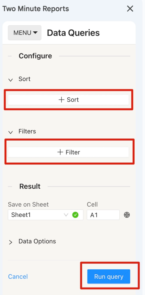 Pro TMR Tip: Run all your queries directly from the Google Sheets Extensions menu: