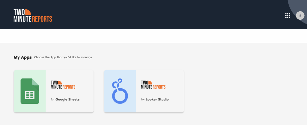 Go to https://hub.twominutereports.com/ Choose Two Minute Reports for Looker Studio.