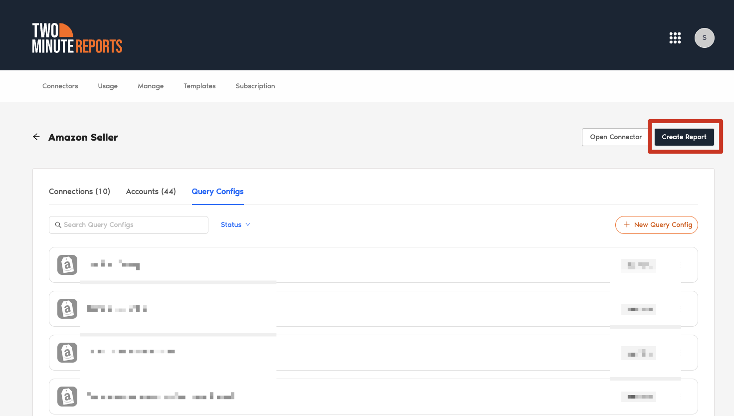 - After creating the Query Config, click Create Report at the top-right corner, as shown below: