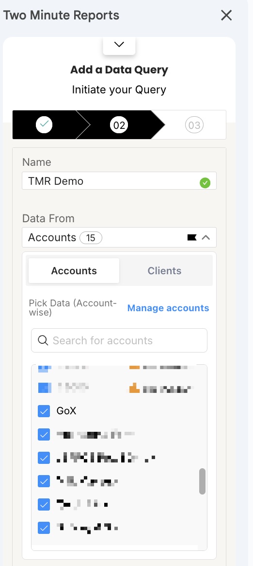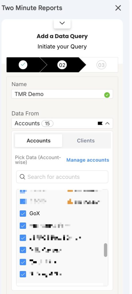 - Enable the toggle for the accounts for which you want to run queries. Please note that you cannot extract data from the disabled accounts.