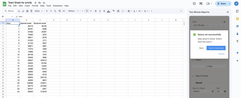 And that’s it. You can now extract your email marketing KPIs in Google Sheets to gain actionable campaign insights.