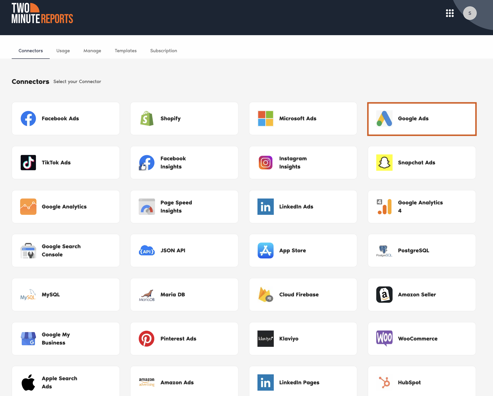 - You require a Google Ads or a manager account with Read Only access. If you’ve already connected to Google Ads but can’t see your ad account, grant the manager account access again.