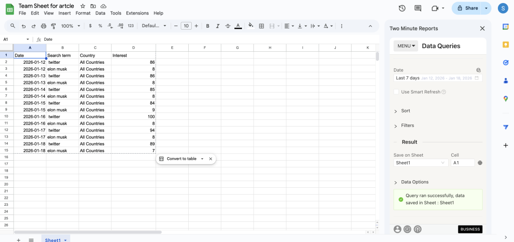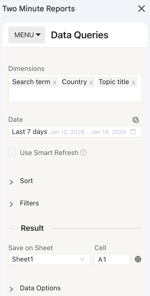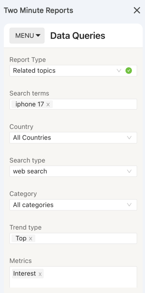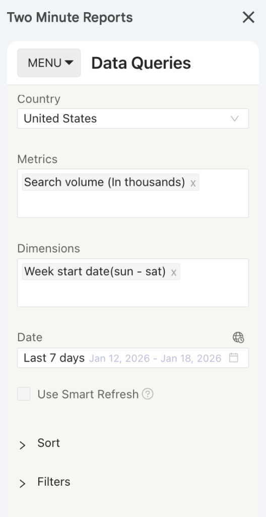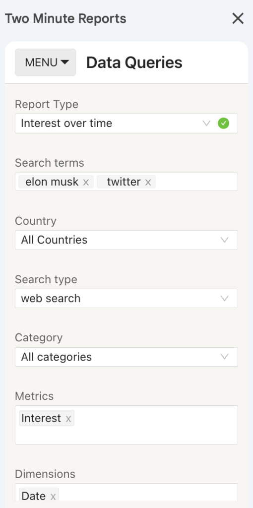 Two Minute Reports offers a solution to this problem, providing an easy way to connect Google Trends with Google Sheets without any coding.