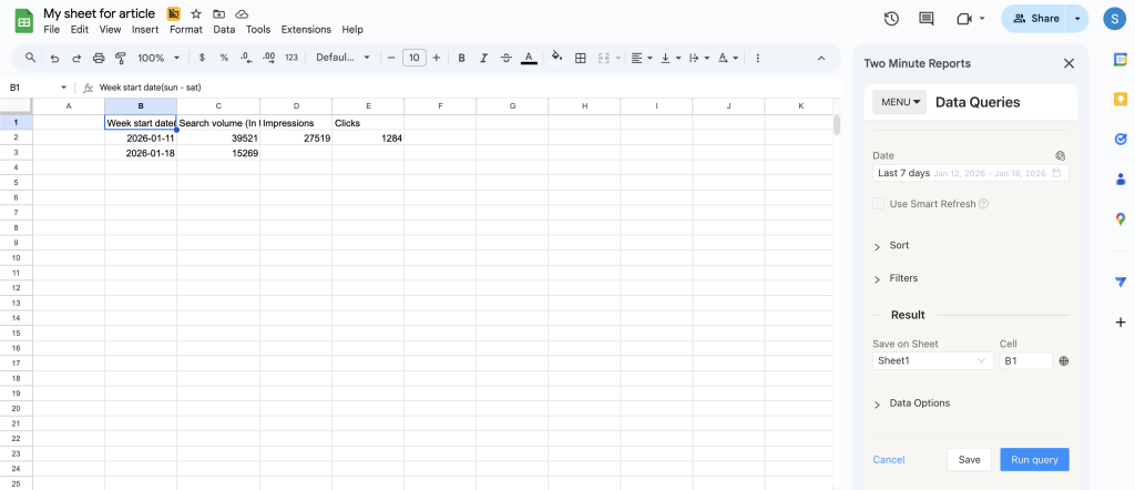Click the blue Run Query button. You will now have the data on your Google Sheet.
