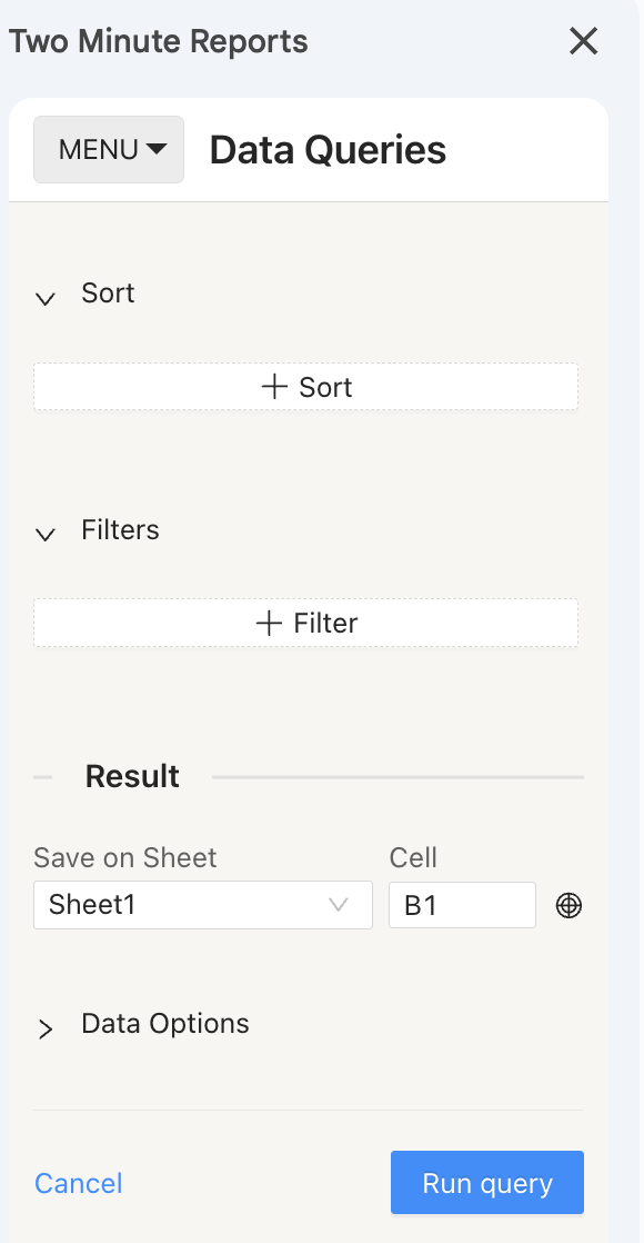 Click the blue Run Query button. You will now have the data on your Google Sheet.
