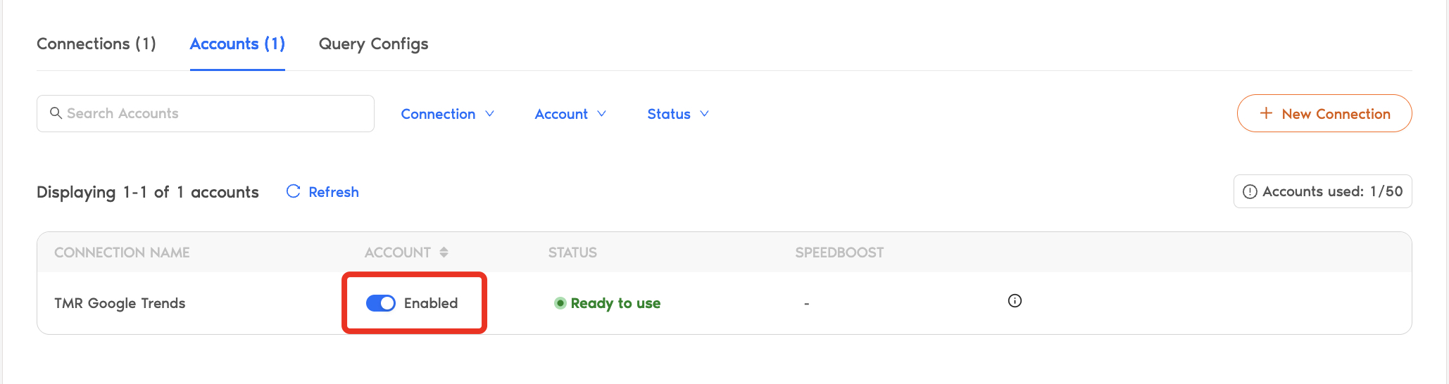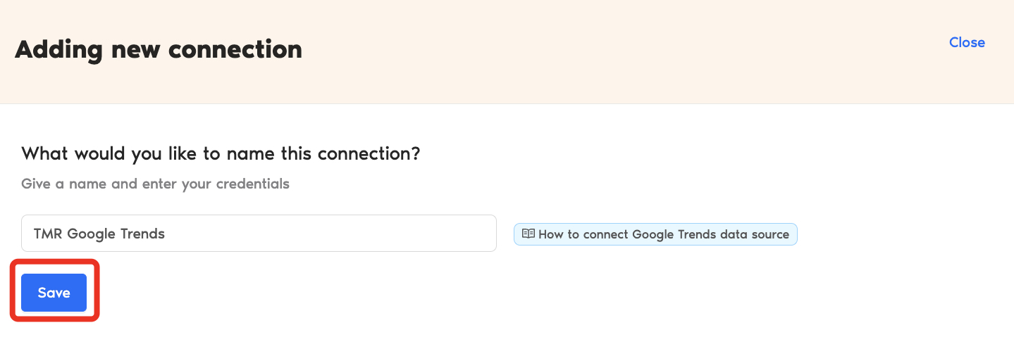 - In the connectors page, find and select Google Trends.