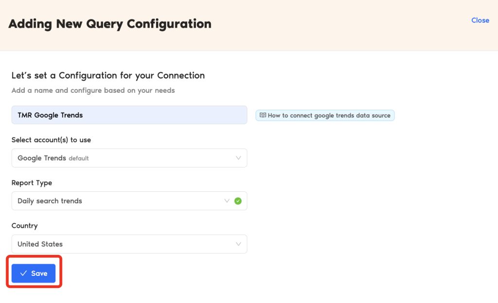 The next following steps is where you configure your Google Trends settings to TMR so that you can create reports in Looker Studio. You may configure the following parameters depending on your preference as TMR has imported them.
