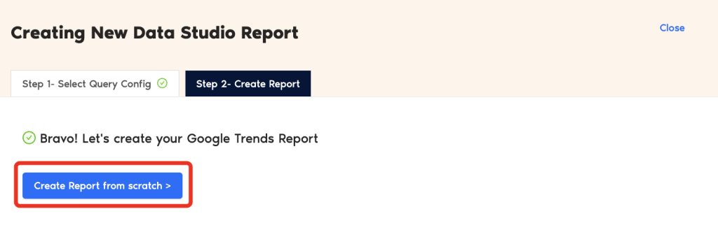 - You can now view the Google Trends schema on Looker Studio. Click Create Report in the right side of the page.