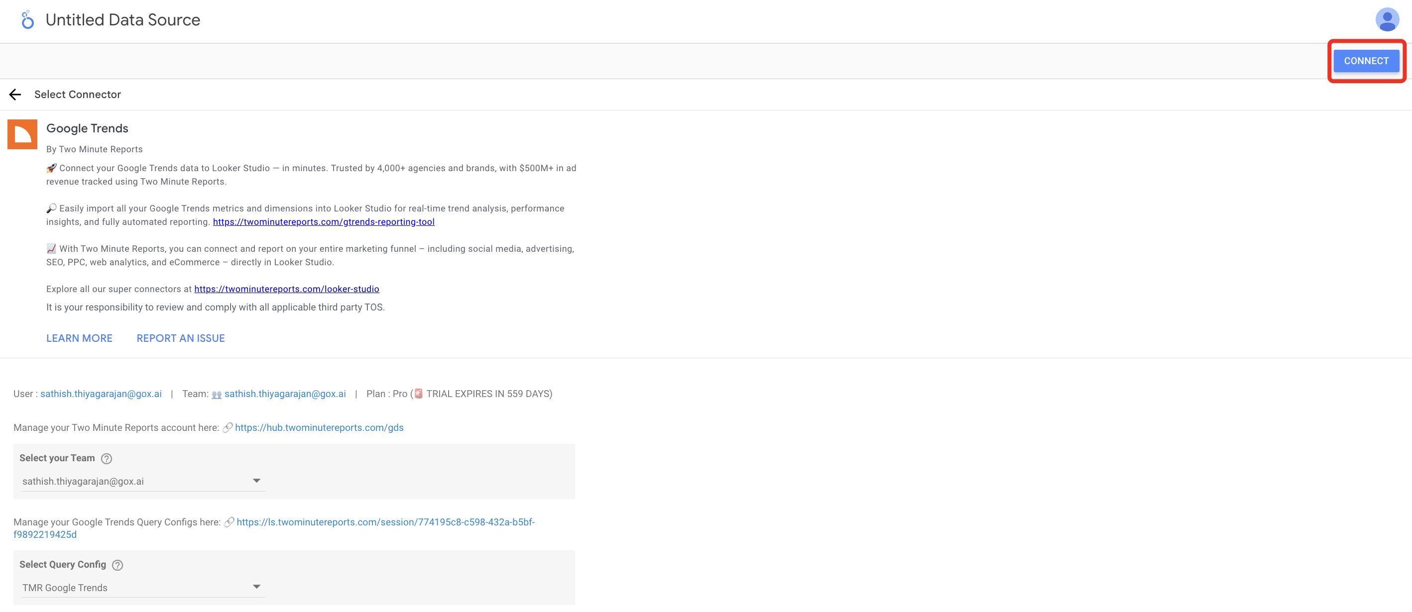 However, the process of importing this valuable information into Looker Studio has proven to be quite challenging. Fortunately, Two Minute Reports presents a solution to this issue, streamlining the connection between Google Trends and Looker Studio without the need for any coding knowledge.