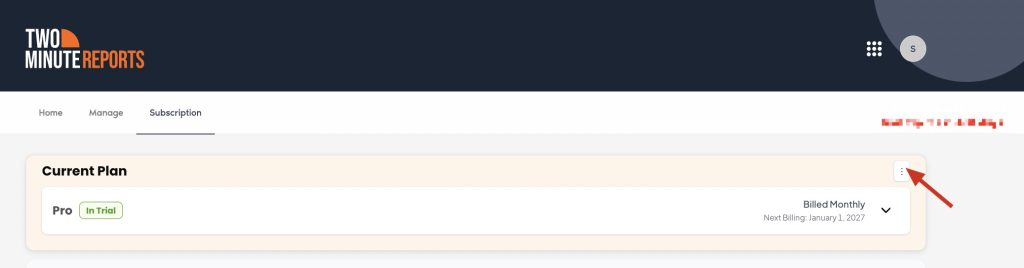 Under the Current Plan section on the right-hand side, click the three dots (⋮) and Click Cancel Subscription