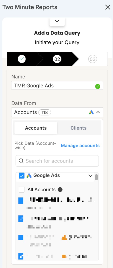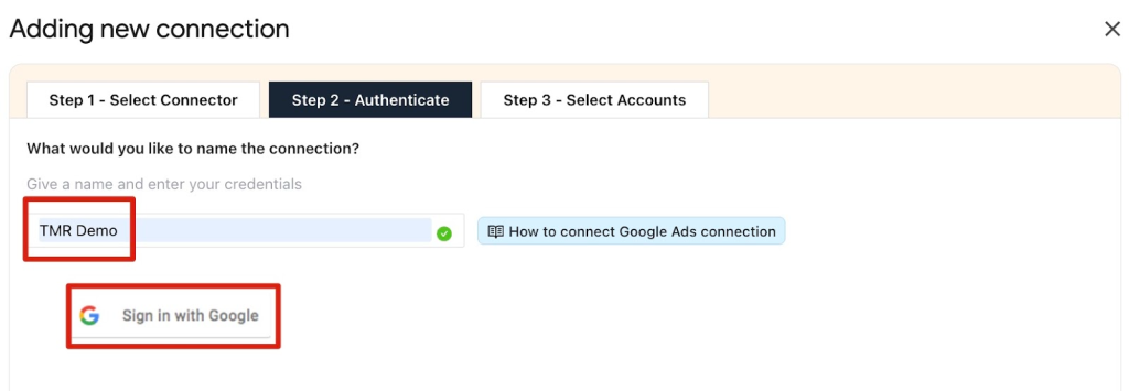 Once the prerequisites are met, proceed with the steps below to link your Google Ads data to Google Sheets through TMR.