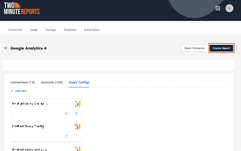 - After creating the Query Config, click Create Report in the top-right corner, as shown below: