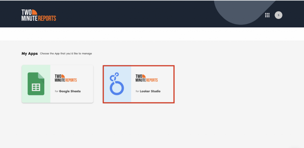 - Go to https://apps.gox.ai/. Select Two Minute Reports for Looker Studio.