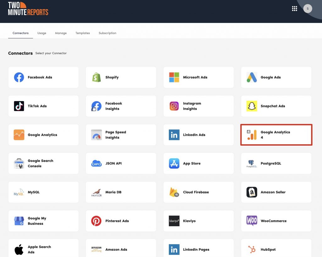 Once you confirm these prerequisites, follow the steps below to connect your GA4 data to Looker Studio via Two Minute Reports.