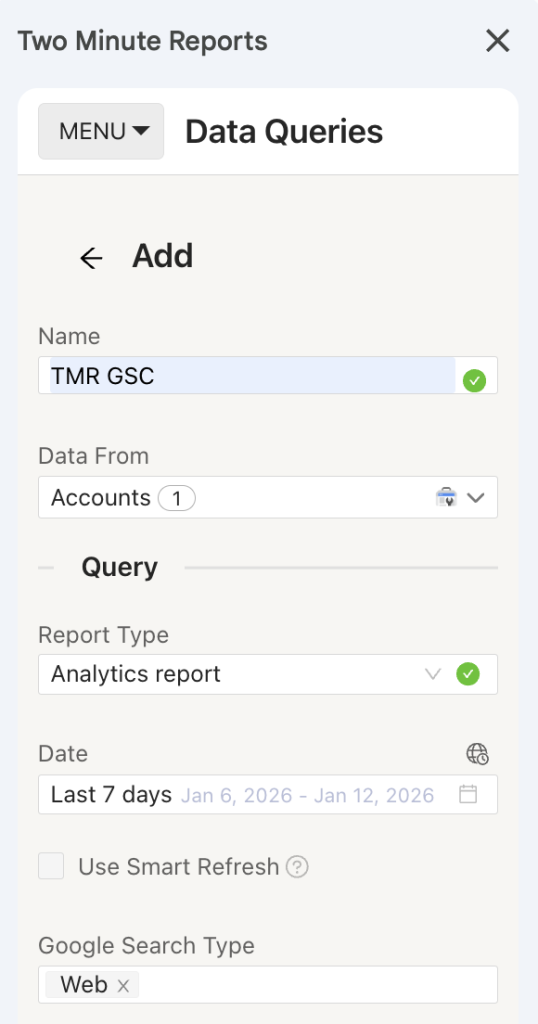 Once you confirm these prerequisites, follow the steps below to connect your Google Search Console data to Google Sheets using TMR.