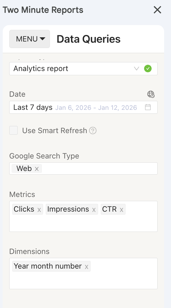Are your Google Search Console (GSC) reports set in stone? With Two Minute Reports’ GSC connector, you can visualize your SEO performance instantly in Google Sheets with zero hassle. Before connecting your GSC data to Google Sheets, please ensure you have the following permissions: