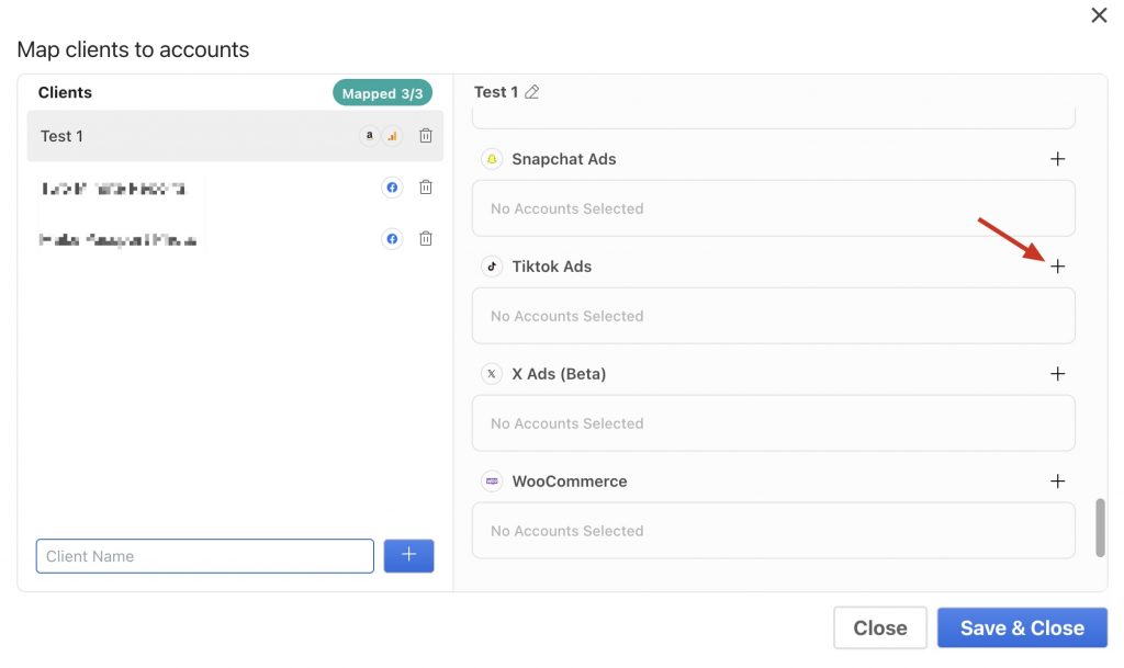Alternatively, navigate to the Clients section. Add your client and map their corresponding TikTok Ads account.