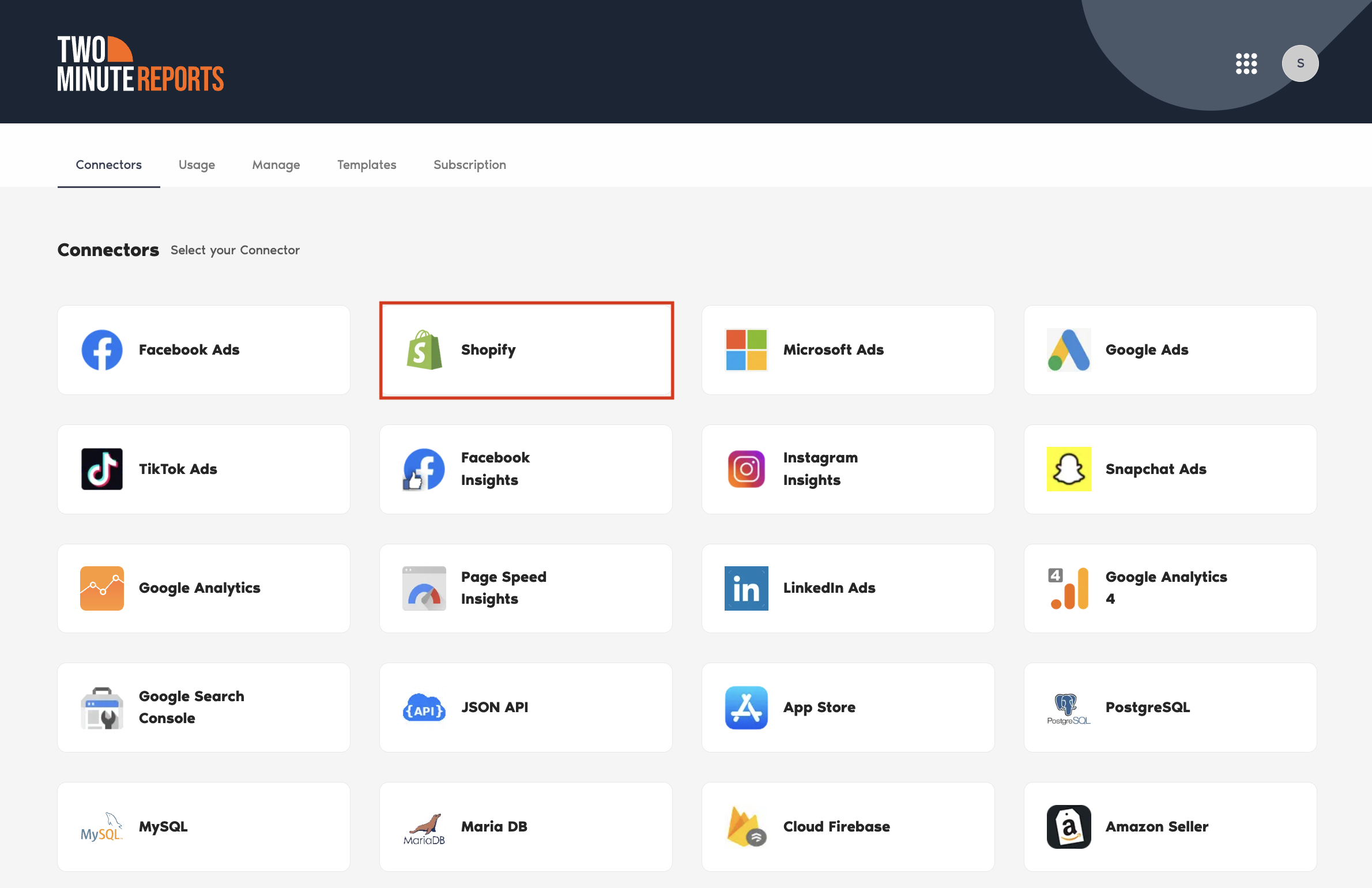 Once you confirm these prerequisites, follow the steps below to connect your Shopify store with Looker Studio through TMR.