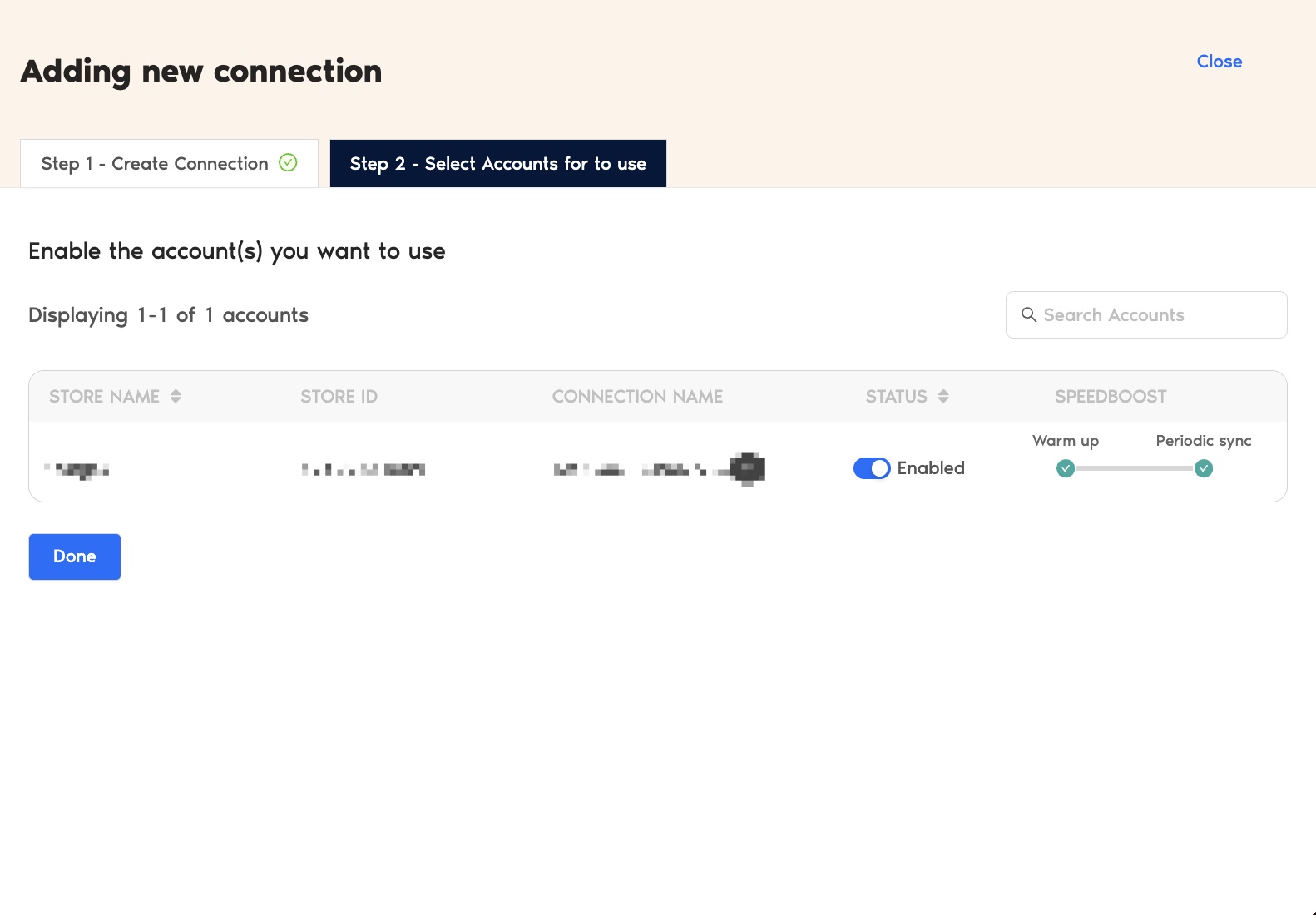 Enable the accounts for which you want to run queries. Once enabled, Speedboost will be automatically activated, performing two critical functions: