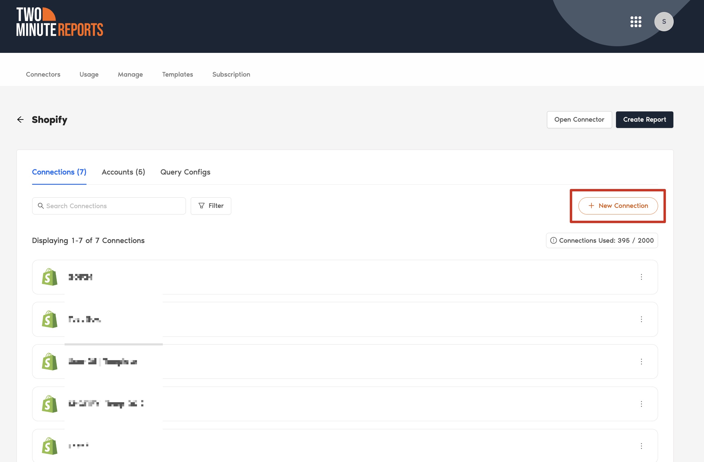 - Next, connect your Shopify store data. Click New Connection to start creating your Connection in Looker Studio.