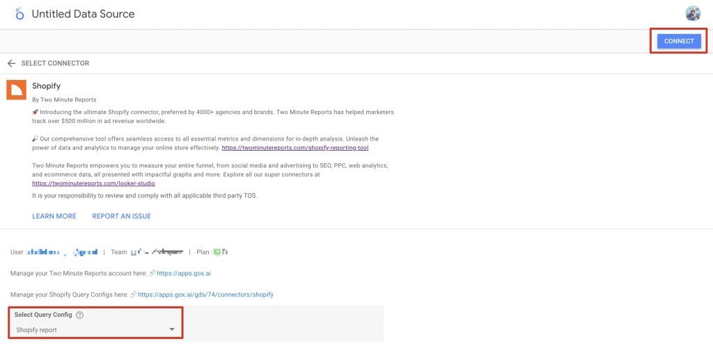 Step 1: Streamline your Shopify store accounts in Looker Studio