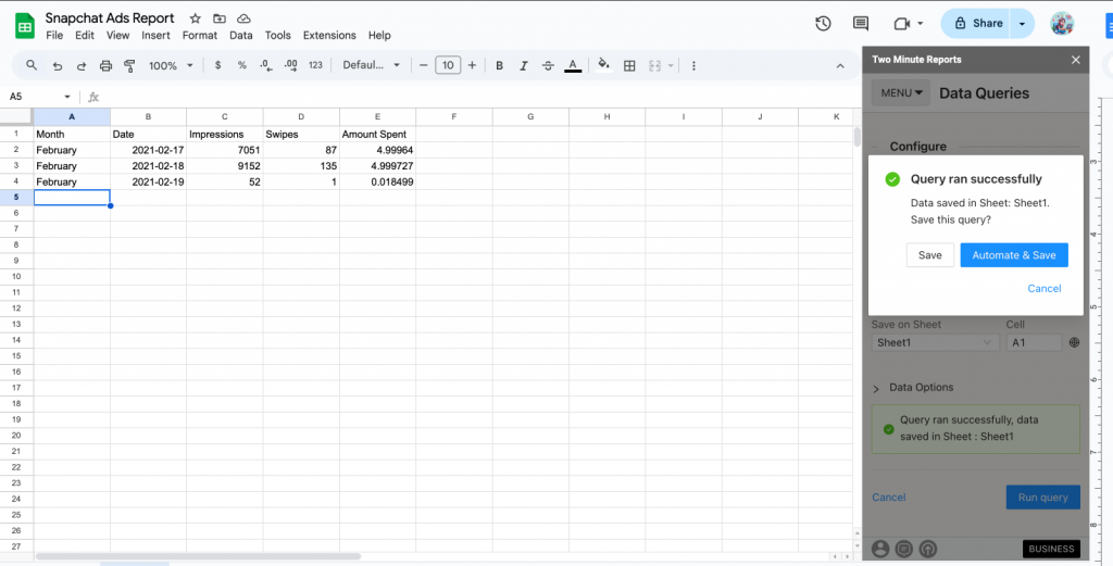 Step 3: Fetching Snapchat Ads data to Google Sheets