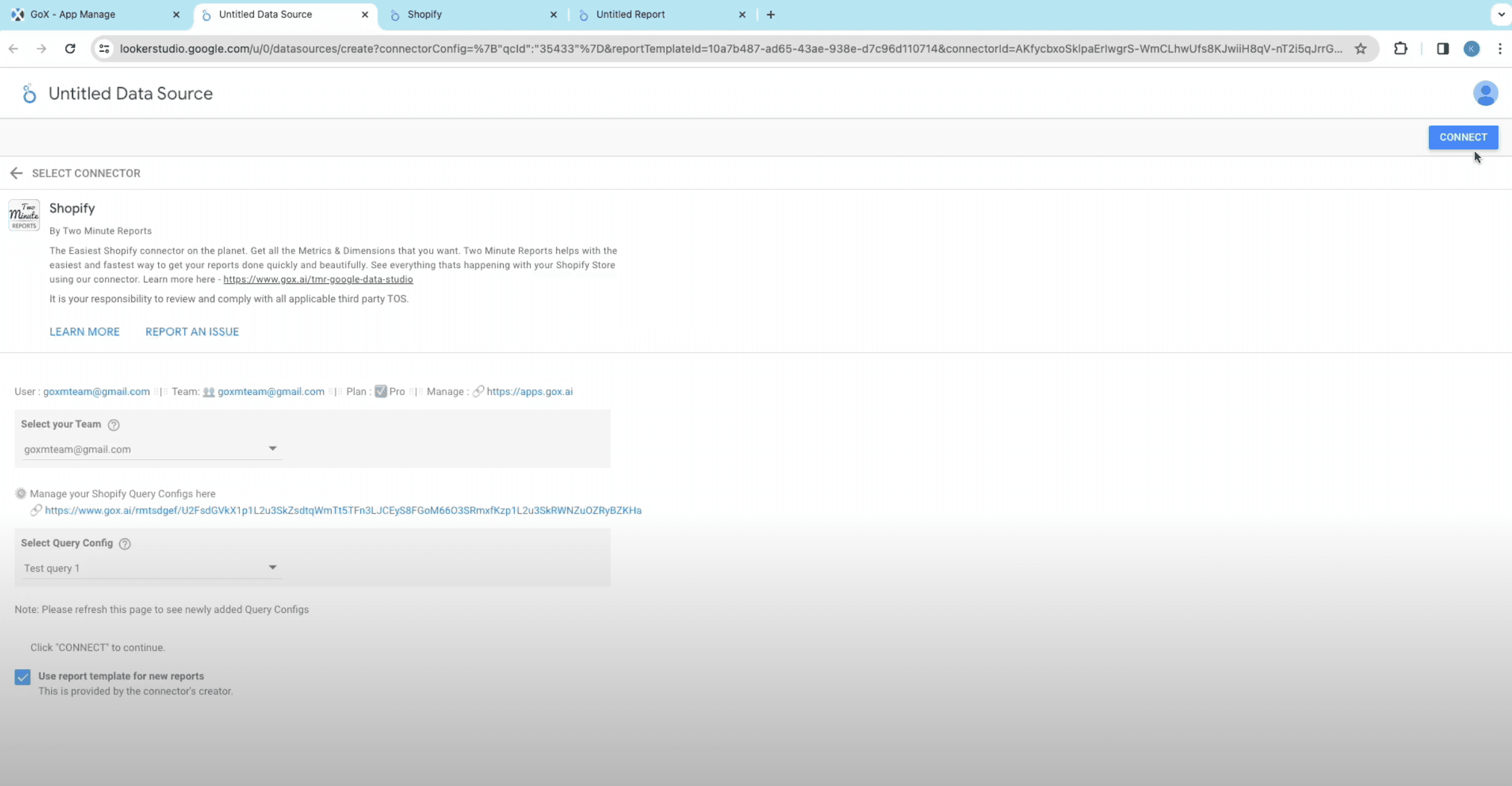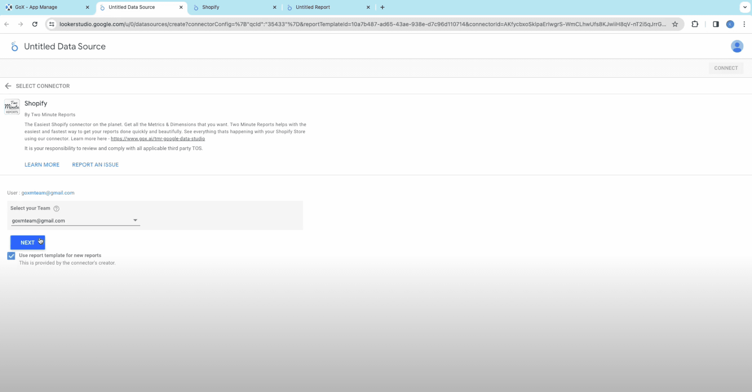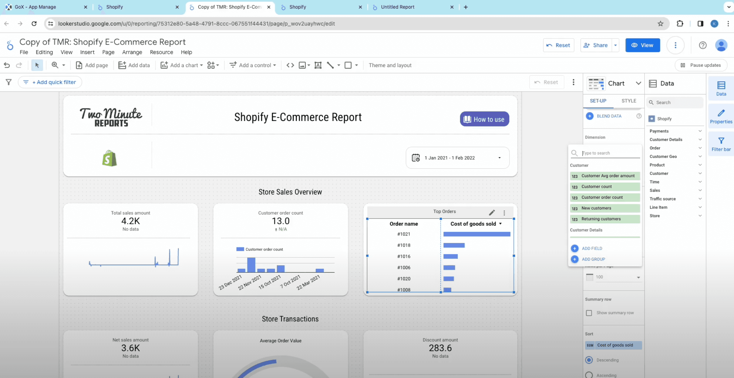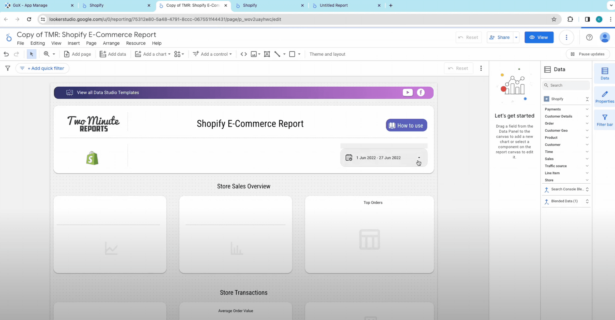 - Then connect Shopify to Google Data Studio and complete building Shopify reports.