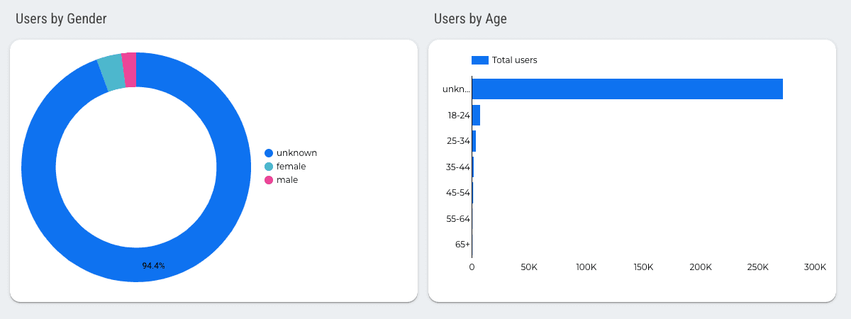 This is a unique and interactive template on Google analytics. You get Descriptive scorecards with comparison data and graphs of the respective date ranges for Total Users and New Users, Total User Engagement, and Revenue. You get various charts for Acquisition, Engagement, Monetisation, Demographics, Tech, and Shopping Funnel All of these metrics can be controlled using the 2 control bars on top, which can change the User type and Date. Click on preview to get an idea of this sophisticated Template.